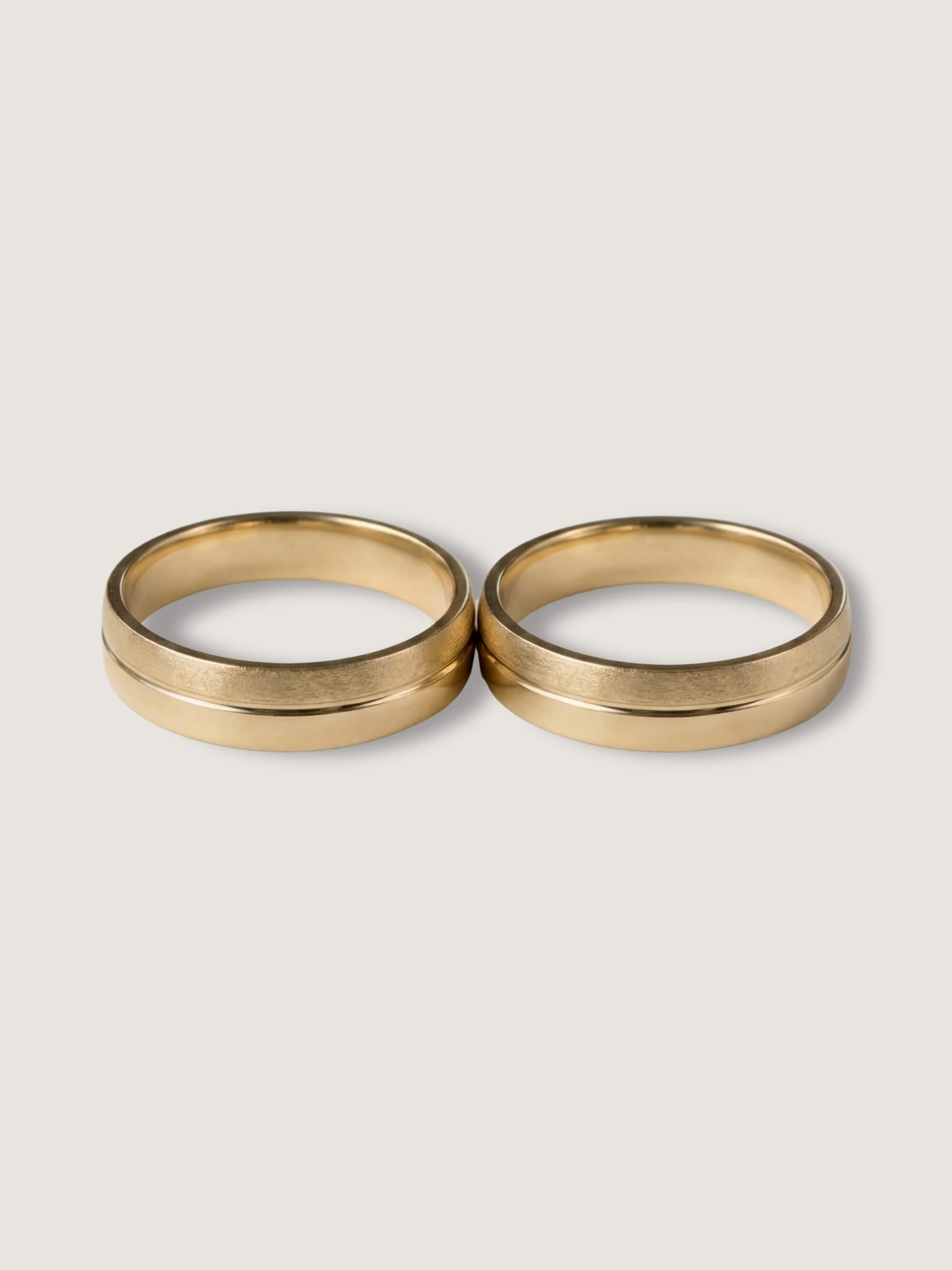 The Summit Duo brings together two wedding bands defined by clean lines and a minimalist character. Its refined design evokes the stability and elevation of a summit, where two paths meet and continue together. With an elegant contemporary presence, these rings reflect balance, strength, and a union built to last.