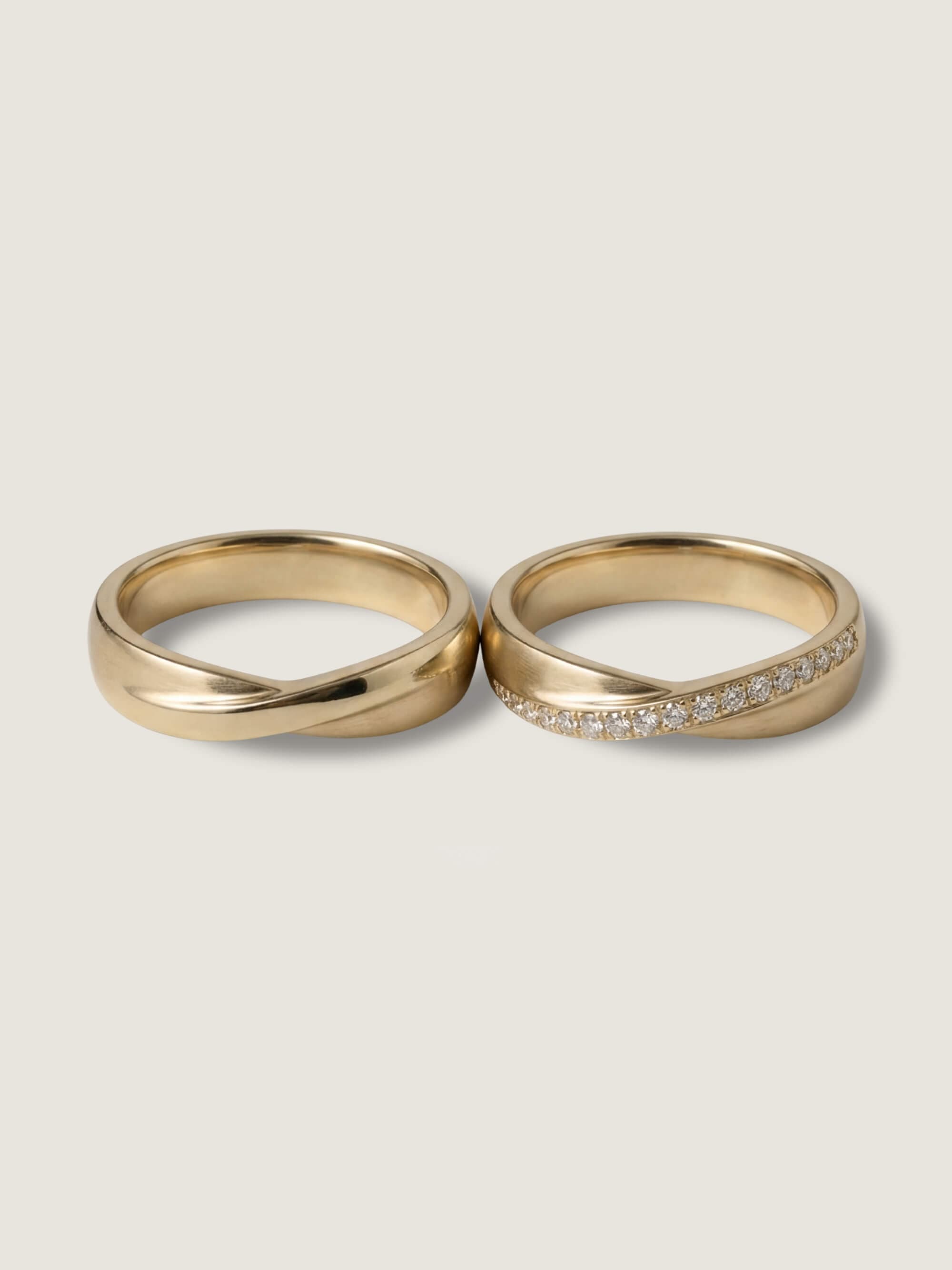 The Summit Duo brings together two wedding bands defined by clean lines and a minimalist character. Its refined design evokes the stability and elevation of a summit, where two paths meet and continue together. With an elegant contemporary presence, these rings reflect balance, strength, and a union built to last.