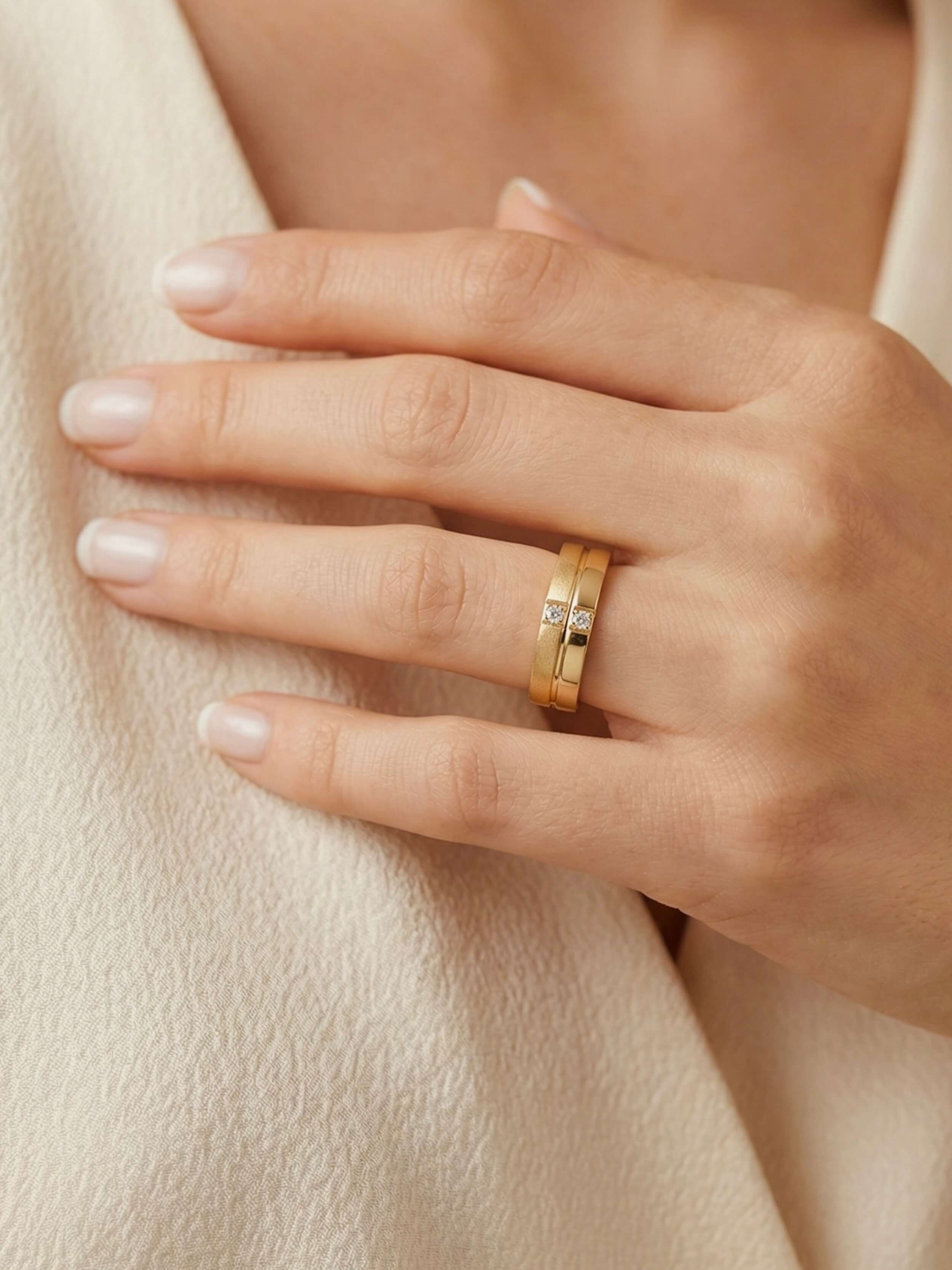 Alianza con centro elevado y superficie satinada.