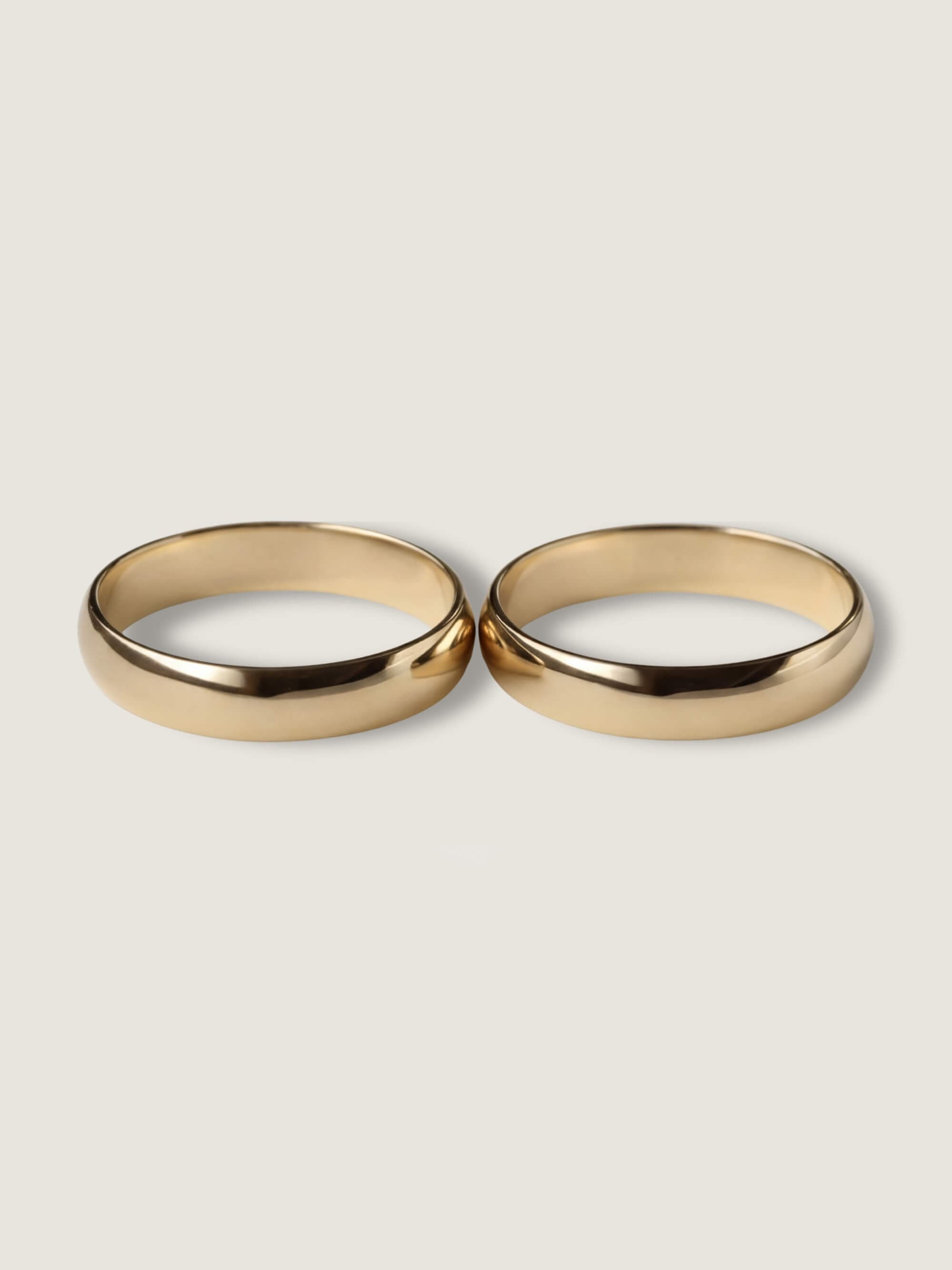 Dúo de alianzas clásicas de 5 mm con diseño limpio y presencia atemporal.