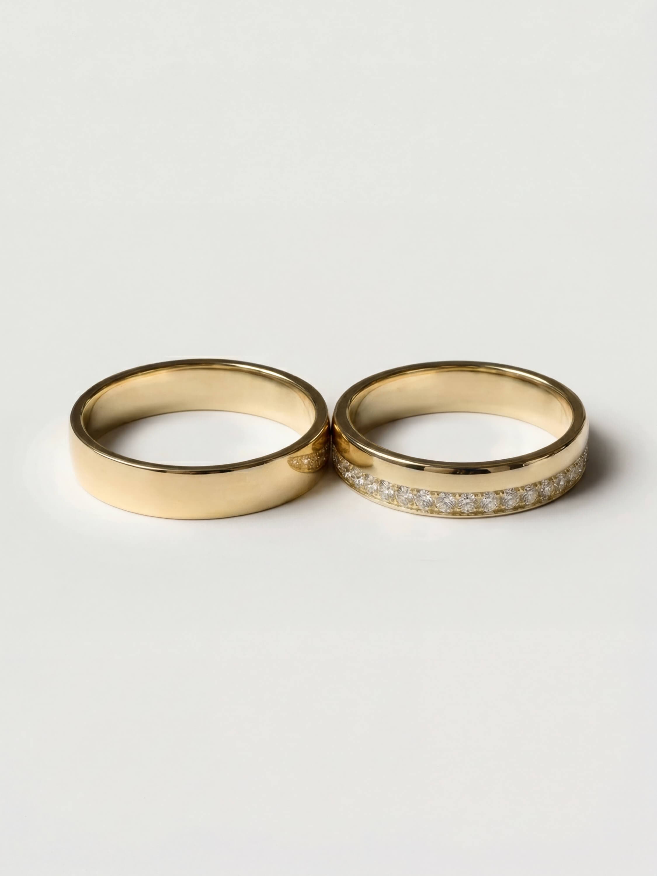 The Classic HR Duo 3mm + 3mm brings together two half-round wedding bands defined by smooth lines and balanced proportions. Their rounded profile reflects light with subtle elegance, creating a timeless presence. The combination of 3mm and 3mm widths allows each ring to maintain its identity while together symbolizing the harmony of two paths becoming one.